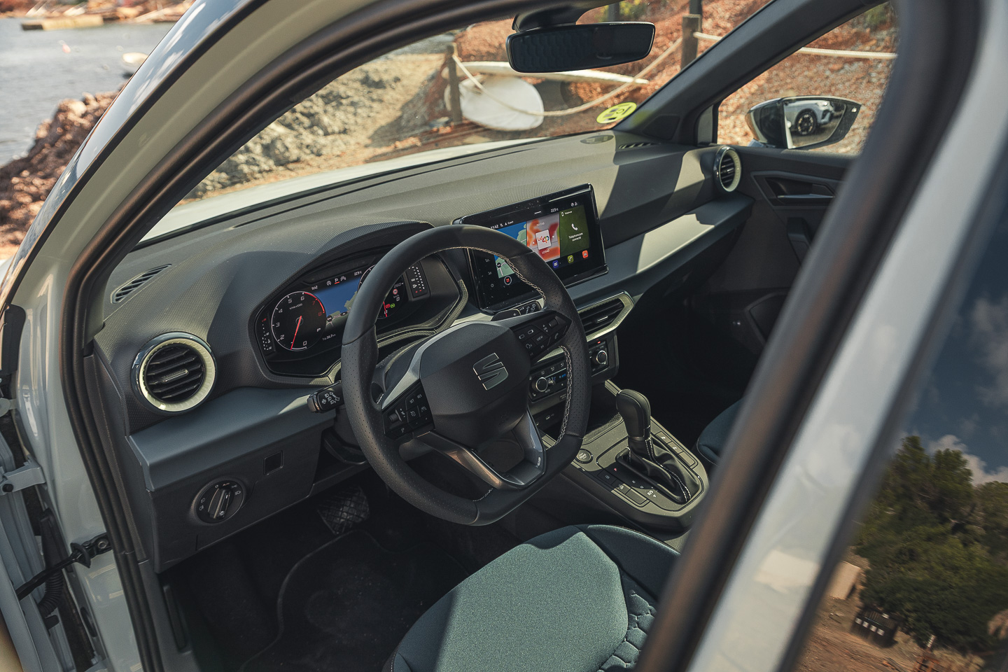 En revanche, j’ai moins apprécié les touches tactiles implantées sur le côté gauche et le fait de ne pas avoir de raccourci pour rejoindre le menu Seat lorsque notre téléphone est connecté à CarPlay ou Android Auto. En parlant de téléphone, sachez qu’un chargeur à induction de 15W est proposé en option en complément des deux prises USB-C.