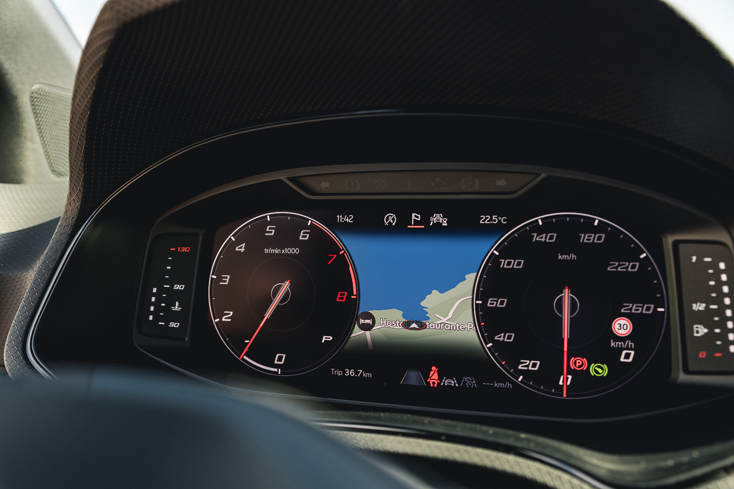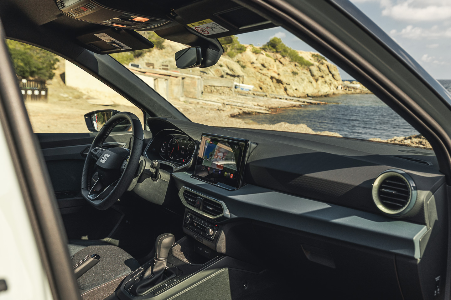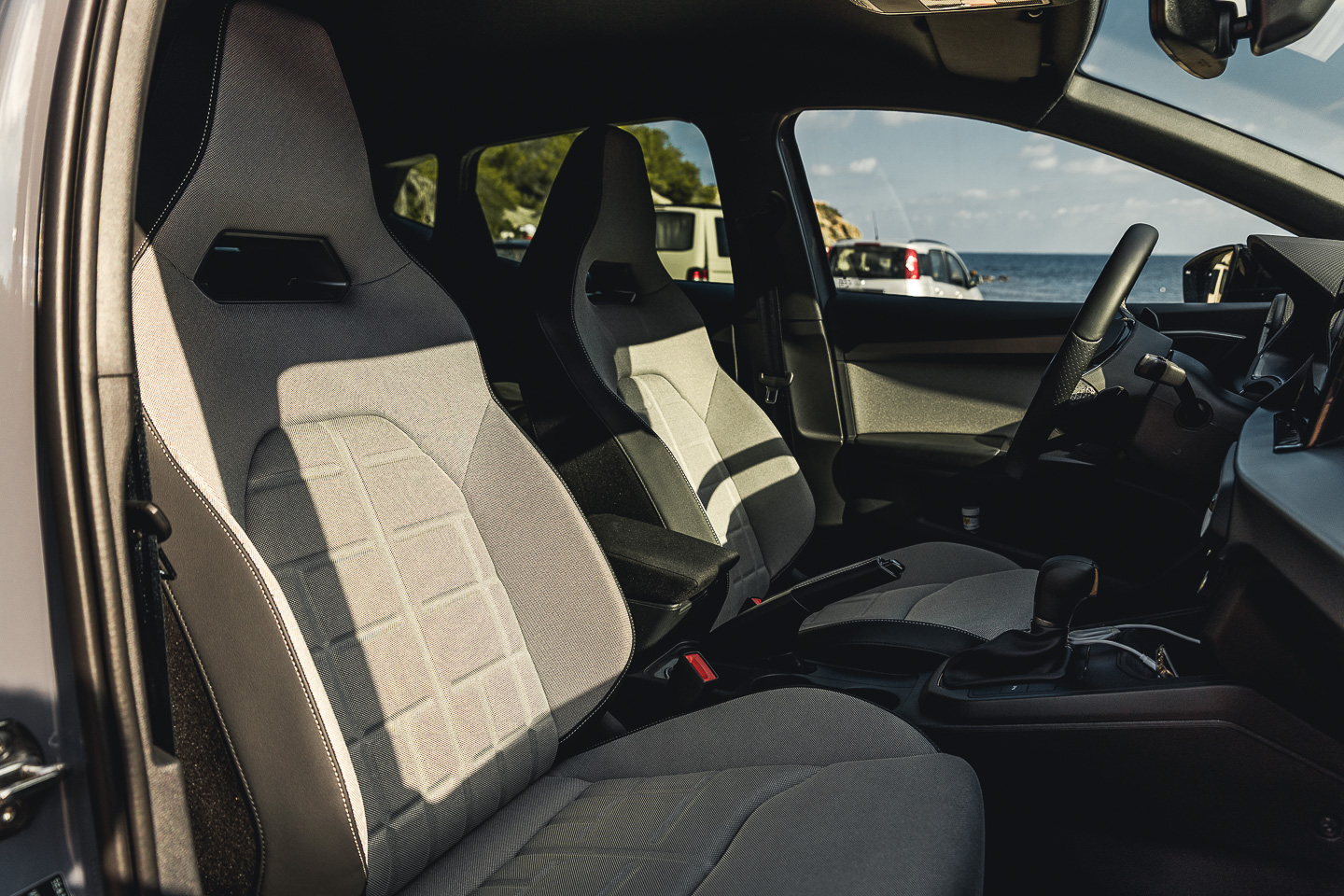 À l’intérieur, les différences se font plus discrètes. En effet, la planche de bord garde le même design, mais dispose à présent d’une meilleure qualité de fabrication avec des matériaux moussés. Deux écrans viennent se placer sur cette dernière : le compteur numérique de 8 ou 10,25″, avec le digital cockpit personnalisable, ainsi que l’écran central de 8,25 ou 9,2″ dépendant de la finition. On y retrouvera le système d’info-divertissement partagé entre Seat et Cupra. Celui-ci convainc par sa simplicité d’utilisation et ses raccourcis personnalisables.