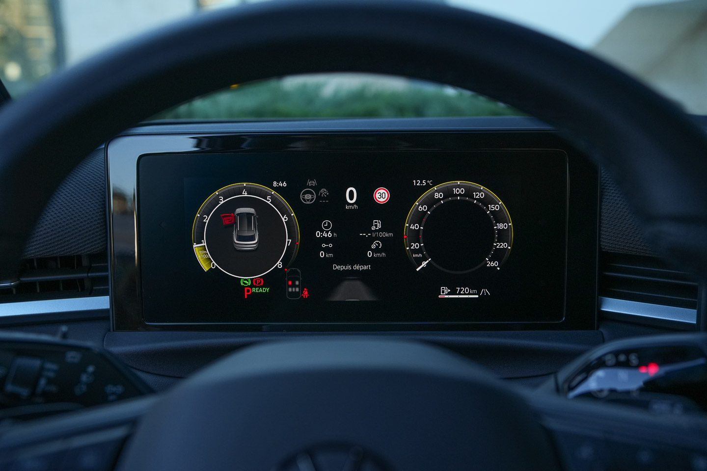 Au lancement, pas de full hybrid ni de PHEV (ils arriveront dans l’année). La principale motorisation reste le 1.5 TSI Evo2 micro-hybride 48V de 150 ch (110 kW) et 250 Nm dès 1 500 tr/min, associé exclusivement à la DSG7 double embrayage. Ce bloc est toujours aussi plaisant : souple à bas régime, vif en montée en régime, assisté par le petit moteur électrique pour les démarrages et les relances.